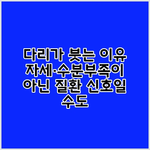 다리가 붓는 것, 즉 부종은 많은 사람들이 경험하는 증상입니다. 단순히 오랜 시간 같은 자세로 앉아 있거나 수분이 부족하여 발생하는 경우도 있지만, 그 이면에는 심각한 건강 문제의 신호가 숨어 있을 수 있습니다. 혹시 여러분도 다리 붓기에 대해 궁금해하고 계시다면, 이 글을 통해 다양한 부종 원인과 건강 문제 신호에 대해 알아보도록 하겠습니다. 이제 다리 붓기의 원인과 관련된 정보를 깊이 있게 탐구해 볼까요?